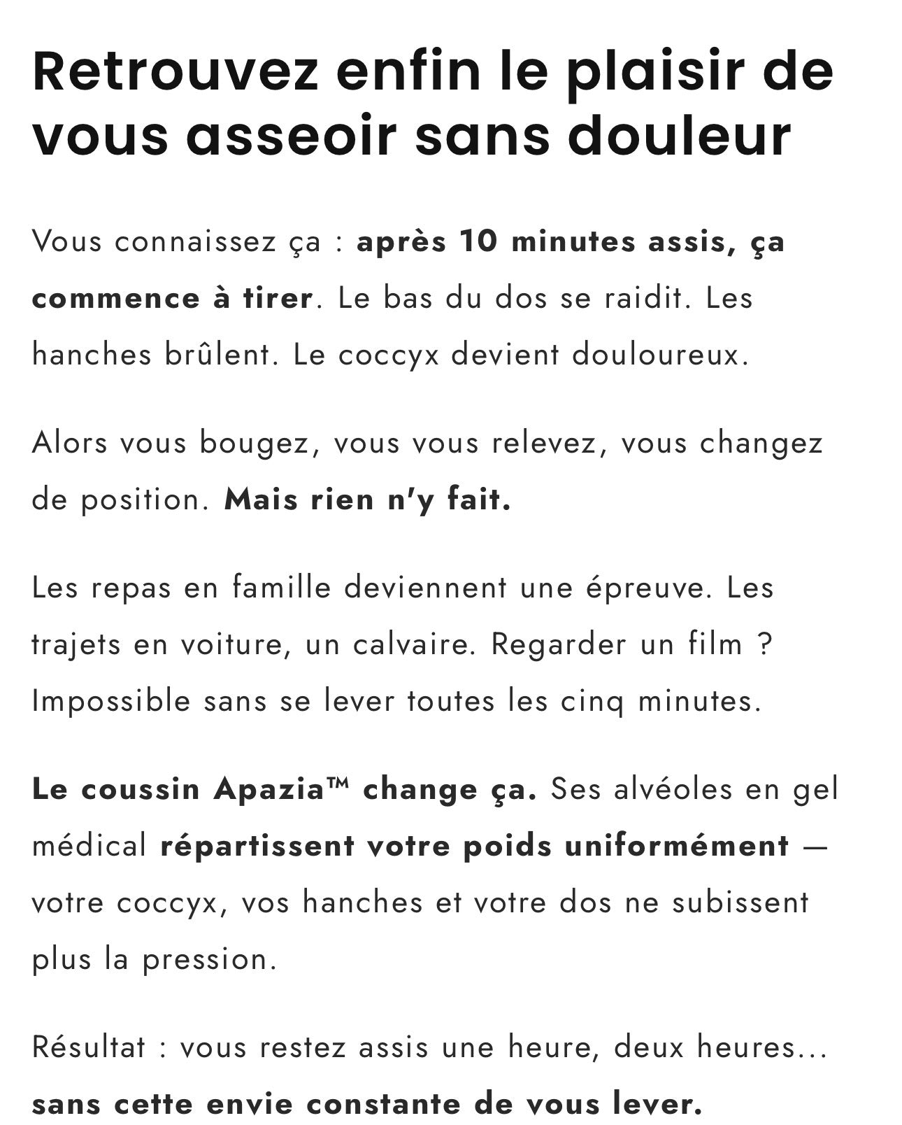 Oui, 90% de nos clients ressentent un soulagement immédiat dès la première utilisation. La technologie alvéolée répartit instantanément la pression sur vos points sensibles. Certaines personnes voient une amélioration progressive sur 7-14 jours pour les douleurs chroniques.